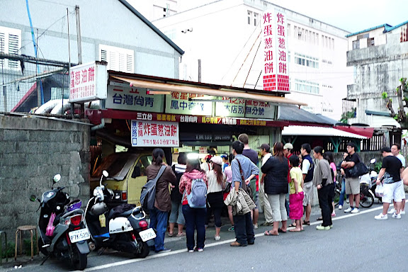 雖然他們攤上寫道販賣時間是下午兩點到七點,最好六點前就得來排隊,以免向隅。拿到餅,我們迫不及待一口咬下,熱油炸過的餅皮,口感果真酥脆,入口感覺一點兒也不油。至於蛋汁更是鮮甜無比。差點忘了說,如果只敢吃全熟蛋的,點的時候一定要跟老闆說,老闆會幫你炸熟。我盡量很小心不要讓蛋汁流下來,但還是餵了我的鞋子吃了幾滴。鞋兒啊,你真是幸福!